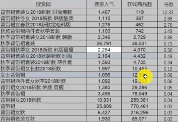 神词公式=1天的搜索人气/在线商品数 (单日的搜索人气不要低于500,小类目除外)