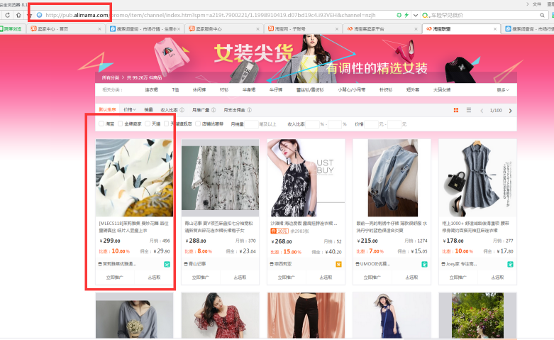我们搜索一个宝贝类目,如女装我们可以看出在前面展示的宝贝其实都是直通车宝贝,所以前面的展示位是直通车的展示位,这里的排名不是根据他的销量来抓取的